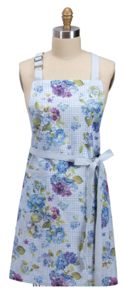 Whispers of blue chef apron with floral pattern.