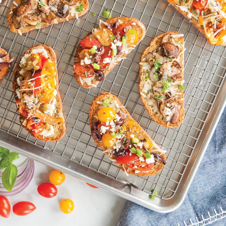 Nordic Ware's Naturals® Big Sheet with a custom nesting oven-safe nonstick grid make a wonderfully versatile pair. Use together for crisping in the oven or separate the two so you have a baking pan and cooling grid.