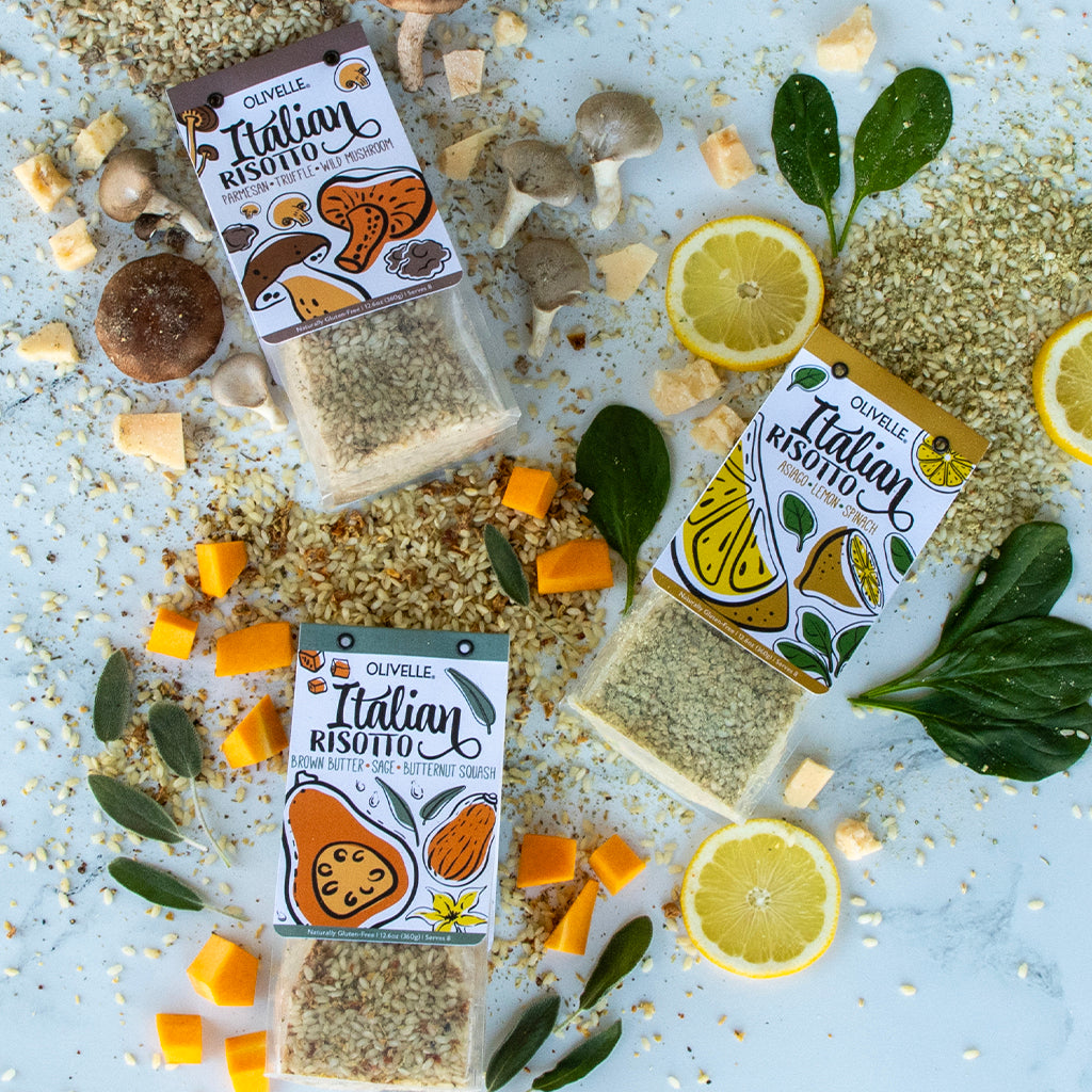 Creamy, umami, and oh so delicious! This risotto is a symphony of flavor with the asiago cheese, zesty lemon, and earthy sweet spinach. Simply add your wine and stock and you are on your way to an easy and heavenly meal. Make this a hearty dinner with the addition of chicken, fish or pork and some grilled veggies.